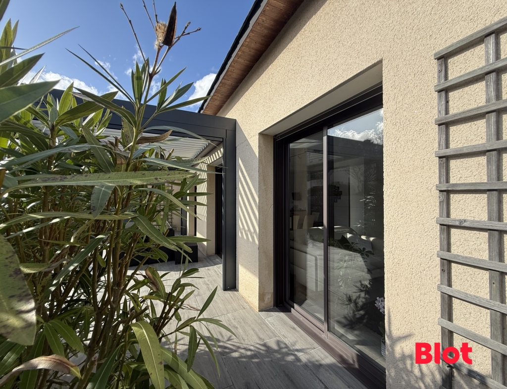 •Accès direct à une grande terrasse carrelée et complétée par une pergola bioclimatique (2021) de 15m2 + rideaux électriques pour profiter pleinement des extérieurs