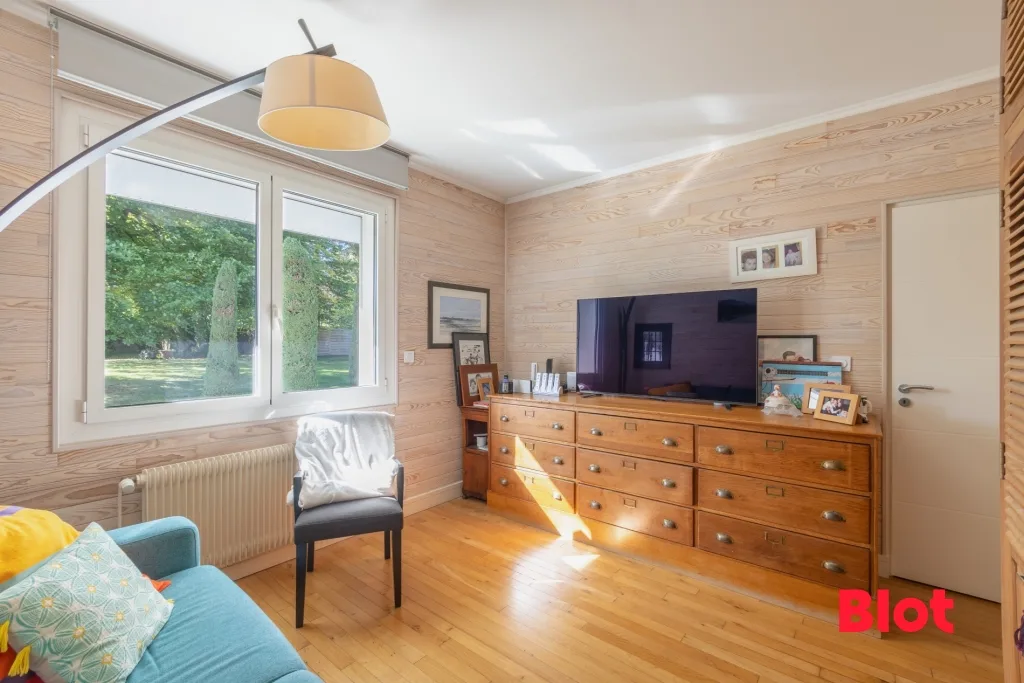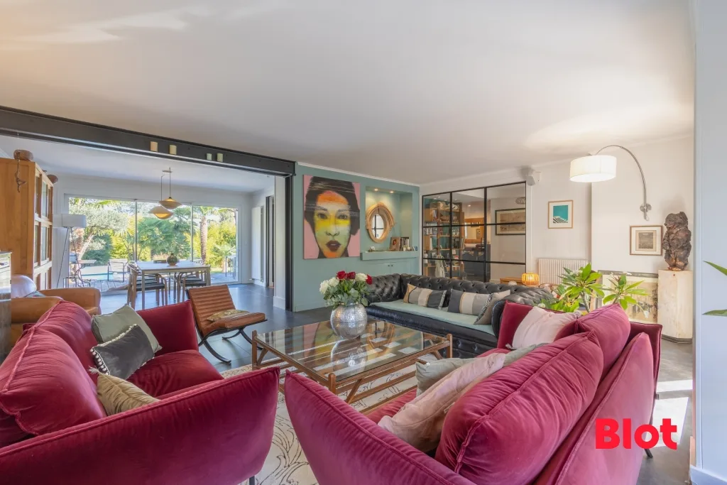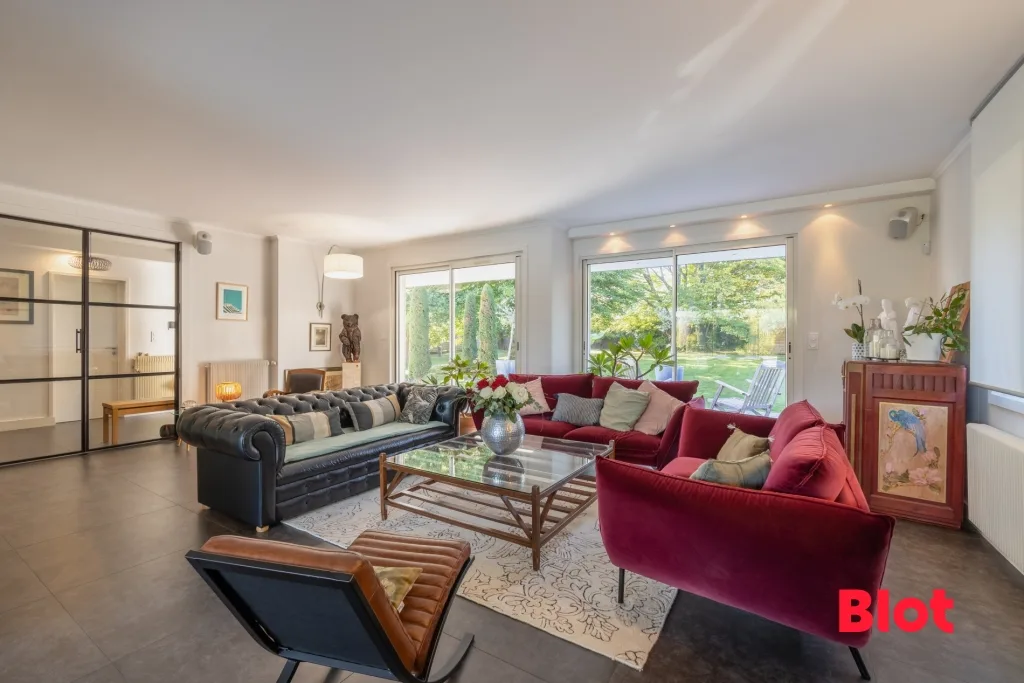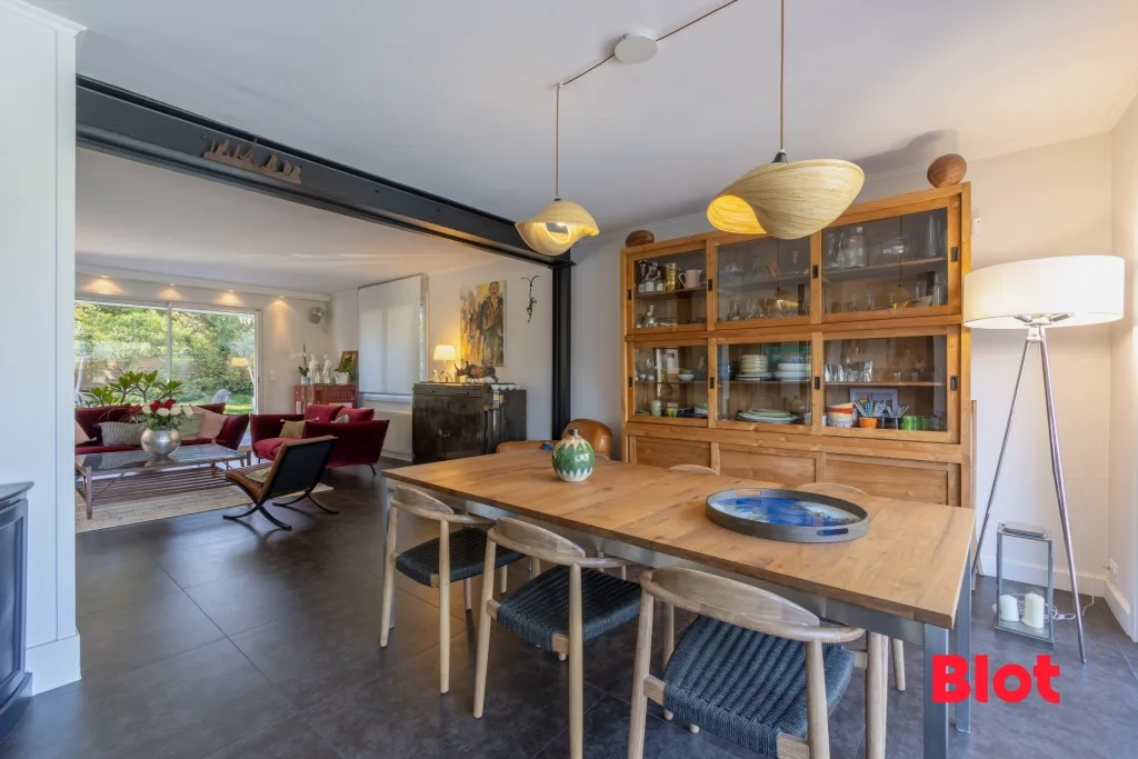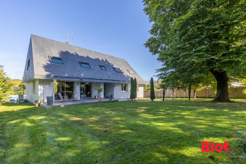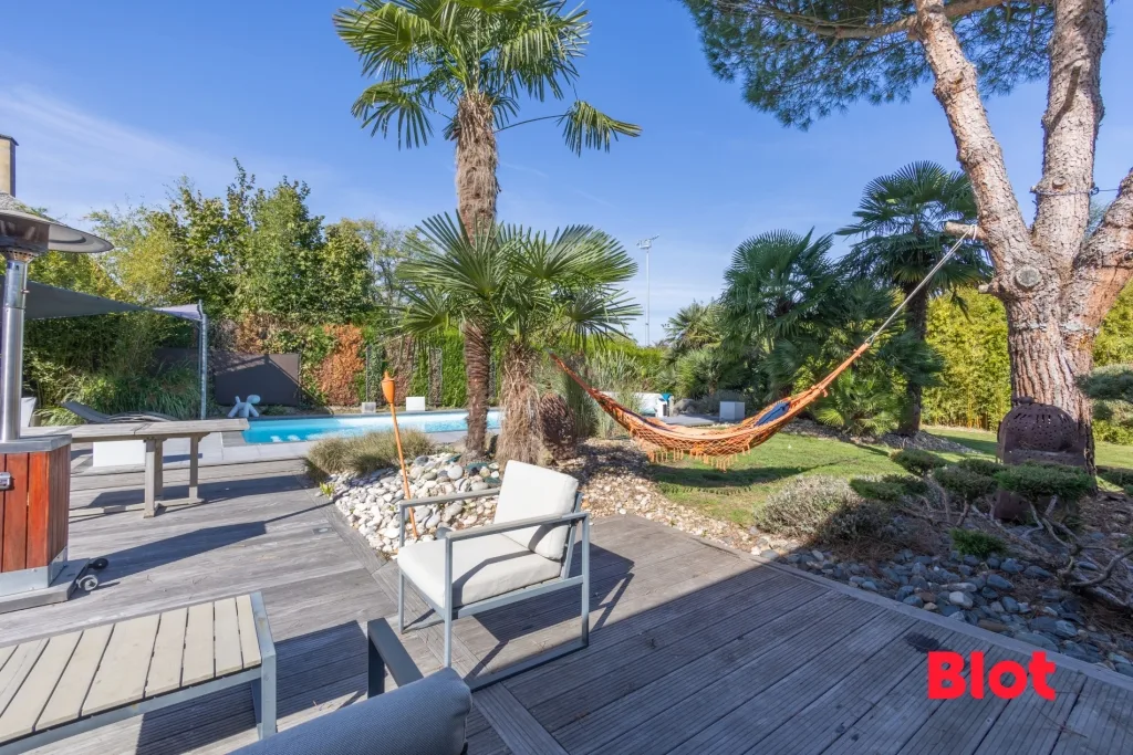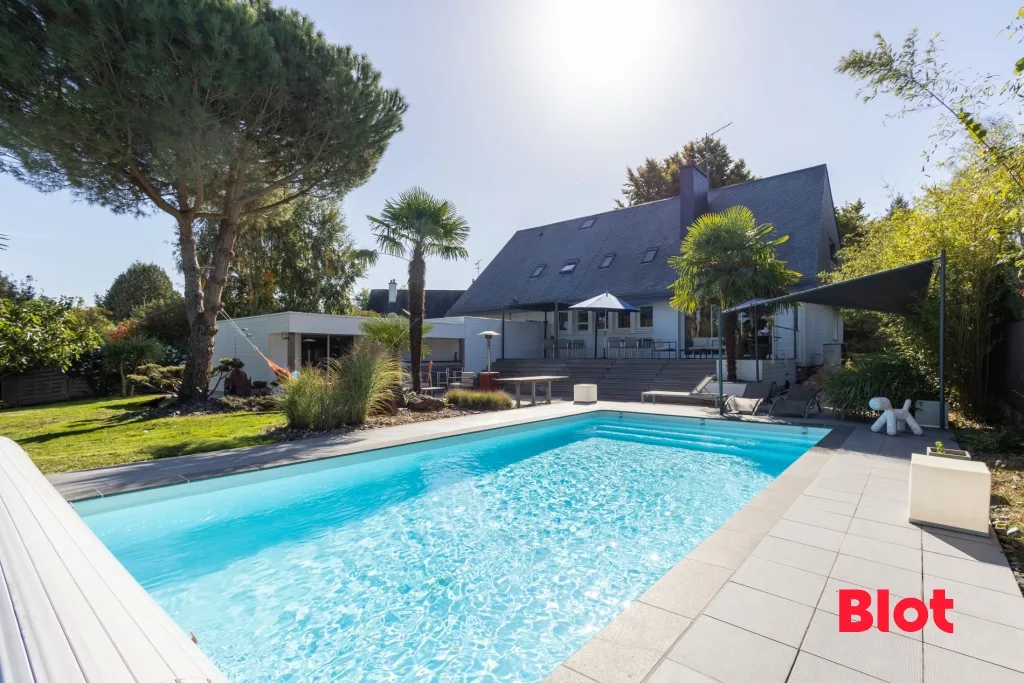 Son grand jardin paysagé et arboré, accueille une piscine chauffée sur un terrain de 2000 m².