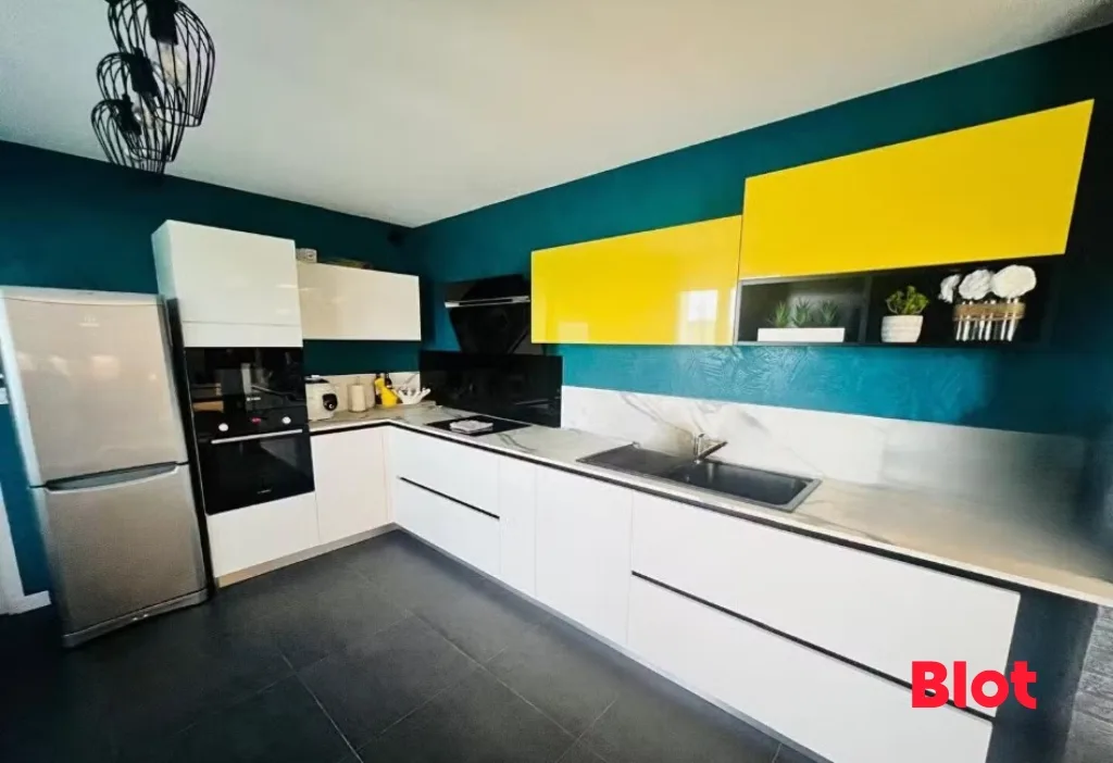 Elle dispose d'une chaleureuse pièce de vie équipée d'un poêle à pellet avec une belle et récente cuisine aménagée et équipée.