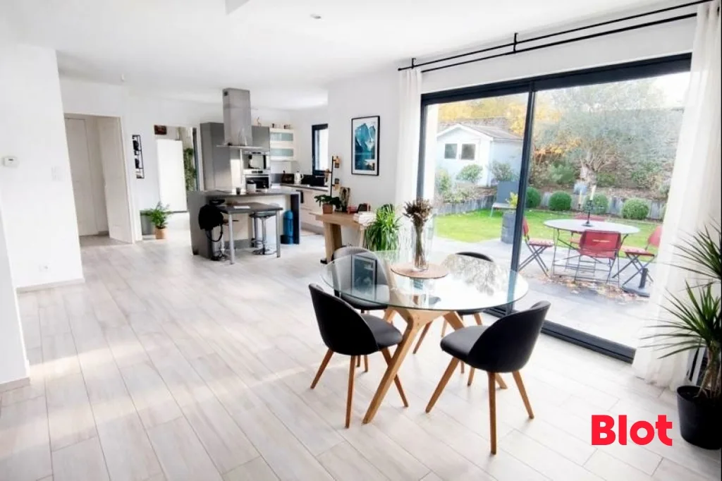 Elle offre des volumes généreux avec plus de 150 m², un grand salon-séjour lumineux ouvert sur une grande terrasse bien exposée, une cuisine aménagée et équipée, une buanderie et une grande suite parentale au rez-de-chaussée.