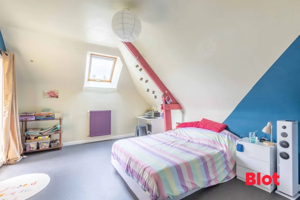À l'étage, l'espace nuit se déploie harmonieusement : trois belles chambres baignées de lumière, dont l'une dispose d'un grand dressing attenant, une salle de bains complète cet étage pensé pour le confort de toute la famille.
