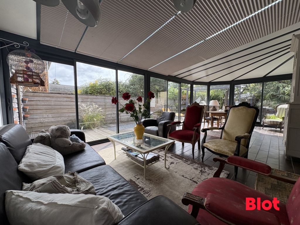 Dès l'entrée, vous découvrirez un belle espace de vie , baigné de lumière, comprenant une cuisine aménagée et équipée, un séjour convivial, un salon chaleureux avec sa cheminée insert ainsi qu'une grande véranda de 30 m2 idéale pour recevoir et donnant directement accès à une agréable terrasse et à un jardin arboré et soigneusement entretenu.