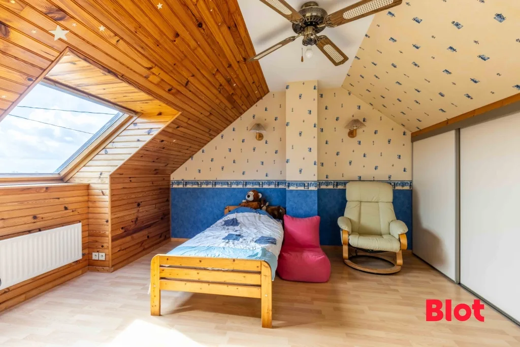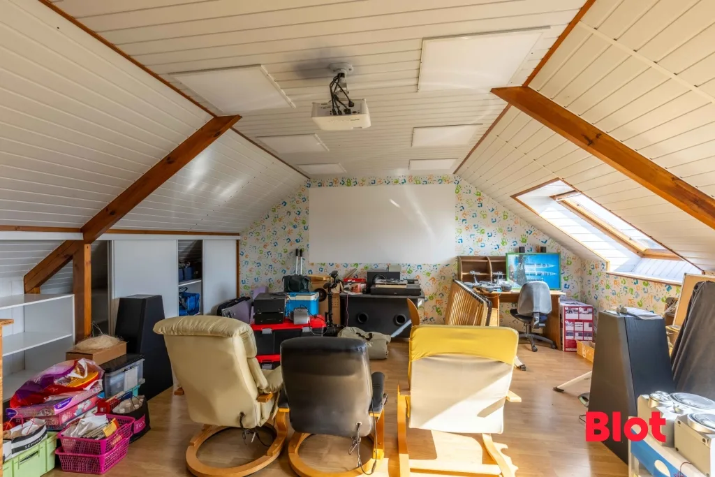 À l'étage, le dégagement dessert deux chambres supplémentaires, une lingerie, une salle d'eau, un WC ainsi qu'une salle de jeux offrant de multiples possibilités : espace détente, bureau, salle de loisirs ou chambre d'amis.