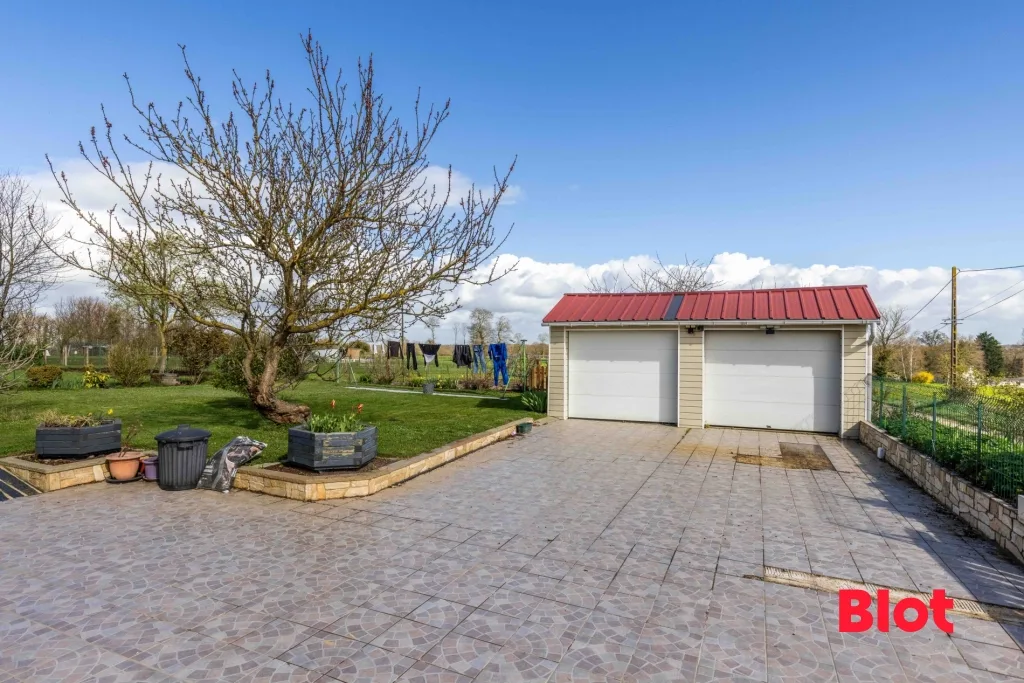 Côté annexes, la propriété dispose d'un garage attenant d'environ 44 m², idéal pour le stationnement et le stockage, ainsi que d'un garage double indépendant d'environ 29 m² et d'un abri de jardin.