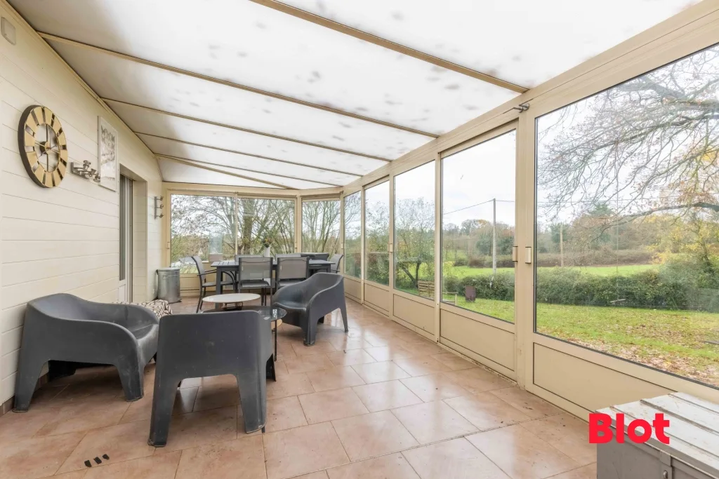 Avant d'accéder aux extérieurs, une véranda d'environ 30 m² vous permettra de profiter d'un espace lumineux et convivial à la mi-saison. Le jardin, entièrement sans vis-à-vis avec une jolie vue dégagée, offre un cadre paisible et naturel, idéal pour les familles en quête de tranquillité.