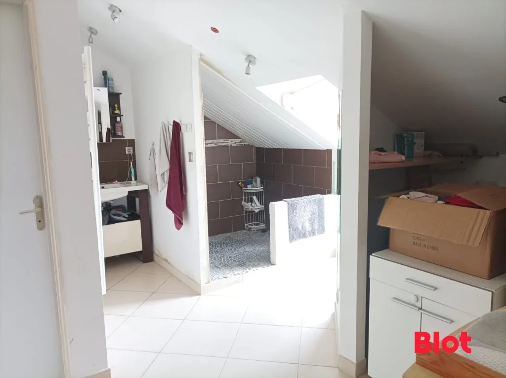 L'étage comprend 2 grandes chambres en cours d'aménagement ainsi que deux salles d'eau, des WC,
