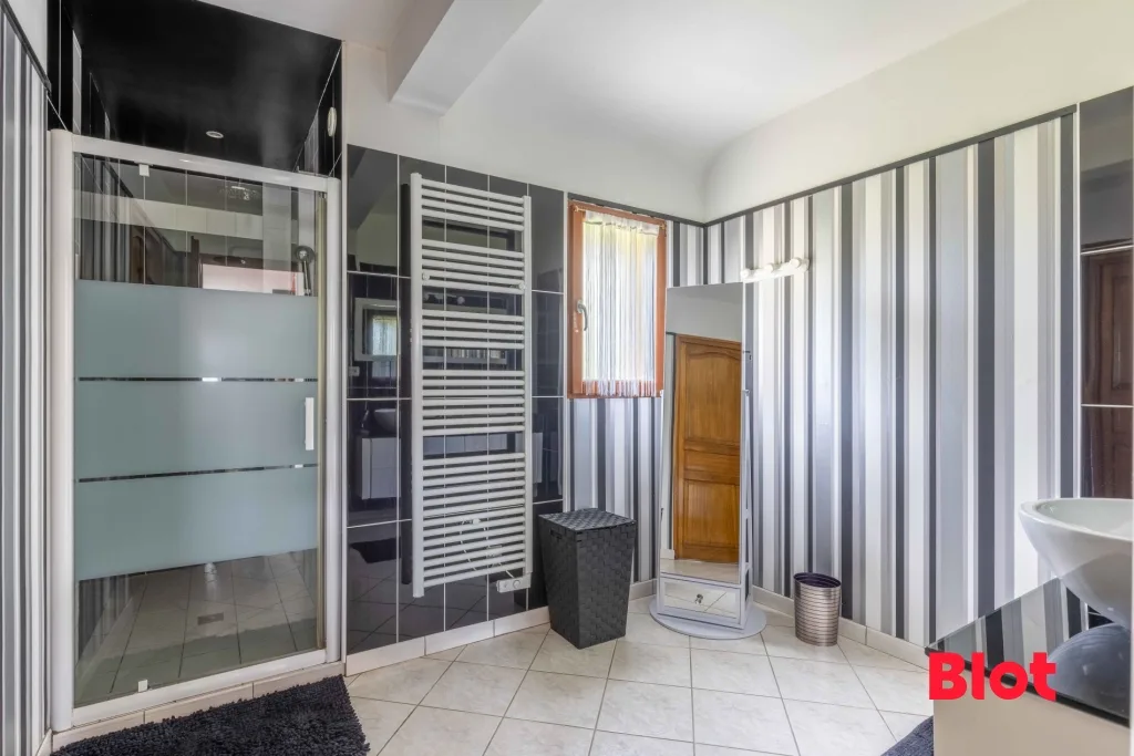 Le rez-de-chaussée propose également une suite parentale avec son dressing, sa grande salle d'eau, et un WC ainsi qu'une buanderie très fonctionnelle, apportant un réel confort de vie au quotidien.
