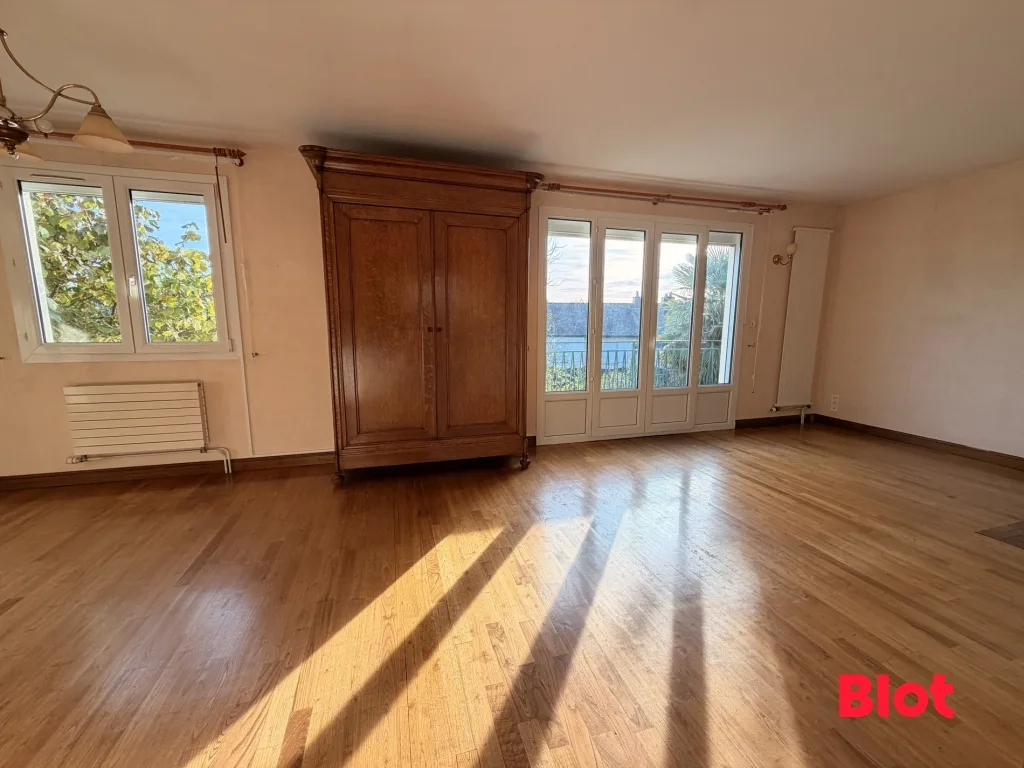 Elle se compose d'une entrée, d'un salon-séjour lumineux exposé Sud-Ouest avec cheminée, d'une cuisine aménagée et équipée, de quatre chambres, et de deux salles d'eau. Le chauffage est assuré par des radiateurs reliés au réseau de la ville. Les menuiseries sont équipées de volets roulants motorisés et la couverture est en ardoises naturelles. L'assainissement est raccordé au tout-à-l'égout.