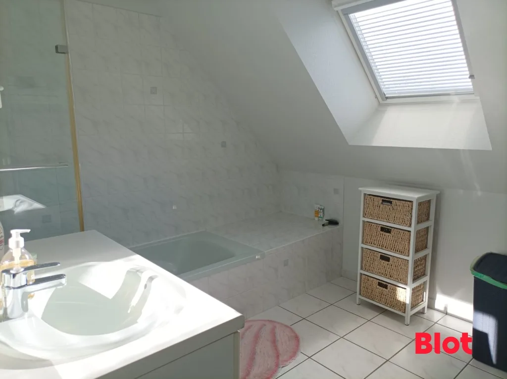 A l'étage, le palier dessert deux grandes chambres avec placard, des WC, une spacieuse salle de bain ainsi qu'un bureau.