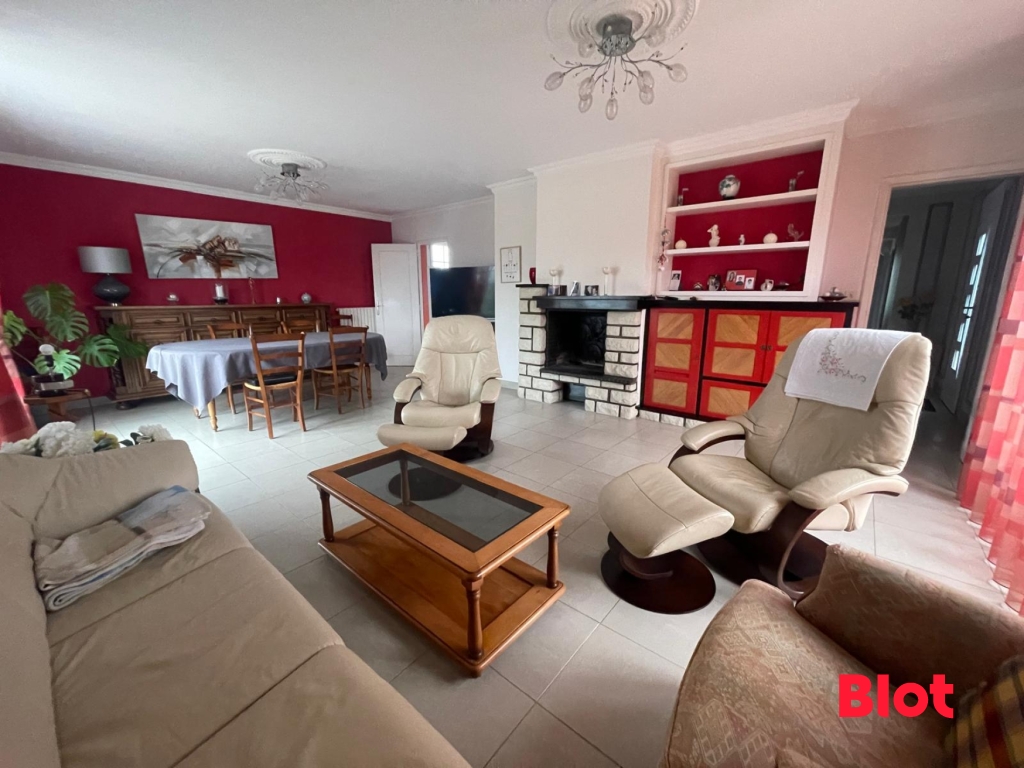 Au rez-de-chaussée, un salon-séjour lumineux avec cheminée ouverte invite à la convivialité. La cuisine indépendante complète cet espace de vie. Côté nuit, quatre chambres, une salle de bains et un W.C. offrent tout le confort nécessaire à une vie de plain-pied.