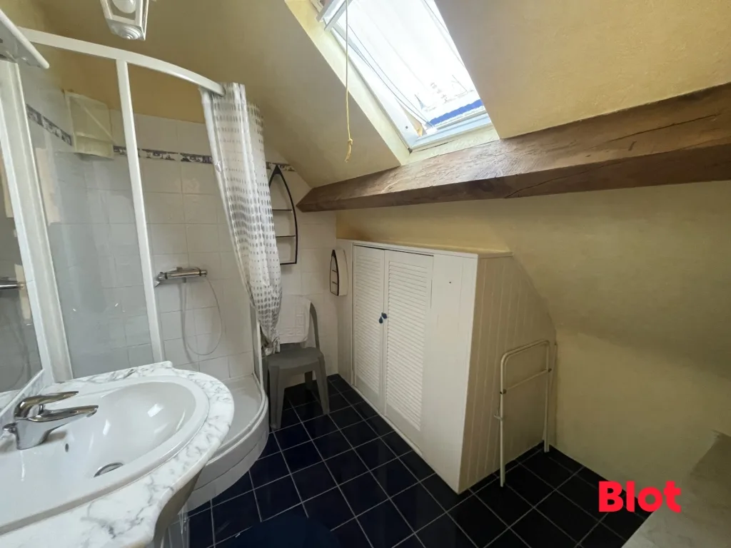 A l'étage, un palier avec placard dessert deux chambres dont une avec placard, une salle d'eau et WC séparés.