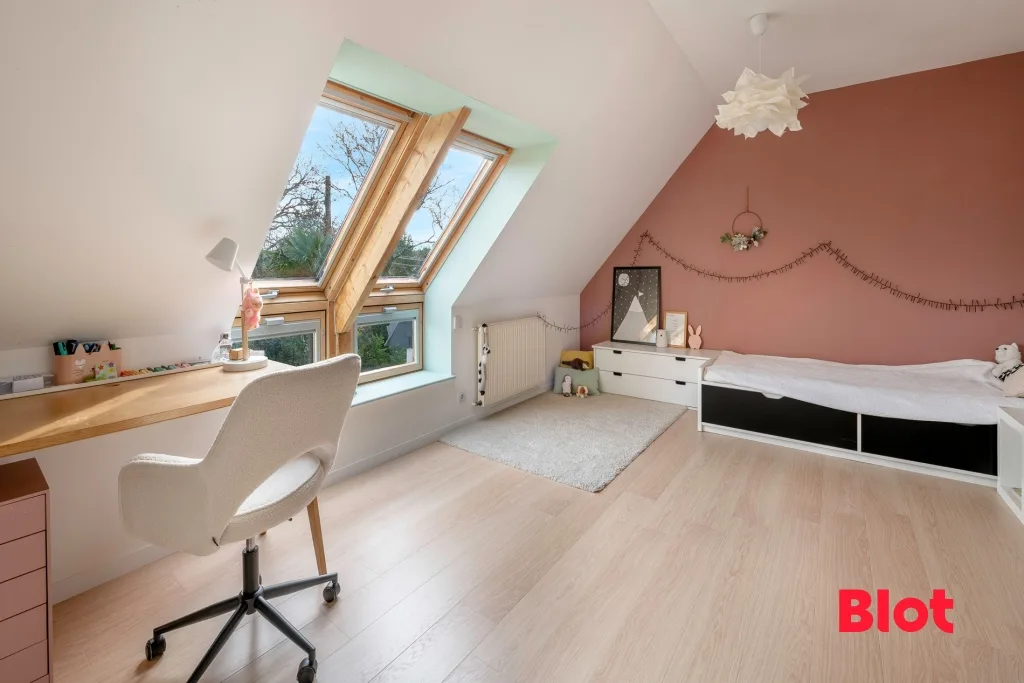 À l'étage, l'espace nuit propose quatre belles chambres, dont une suite parentale avec balcon, dressing et salle d'eau. WC séparés et une salle d'eau également à l'étage.