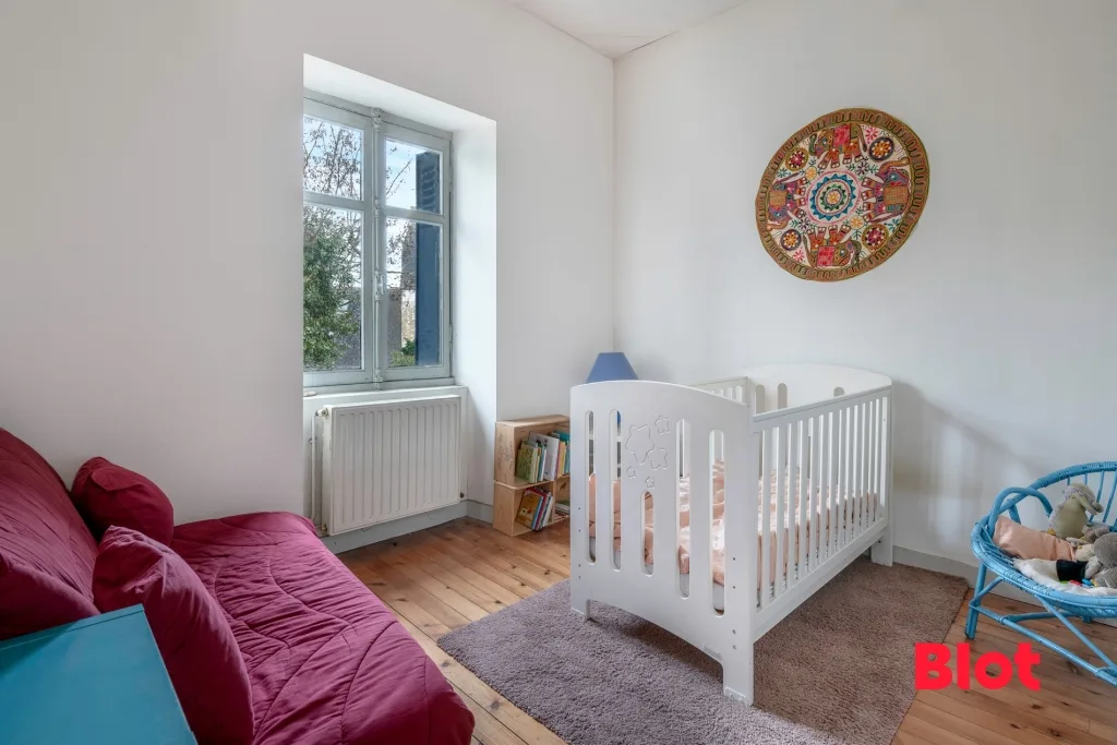 À l'étage, le palier dessert trois chambres dotées d'un joli parquet et une salle de bains avec WC.