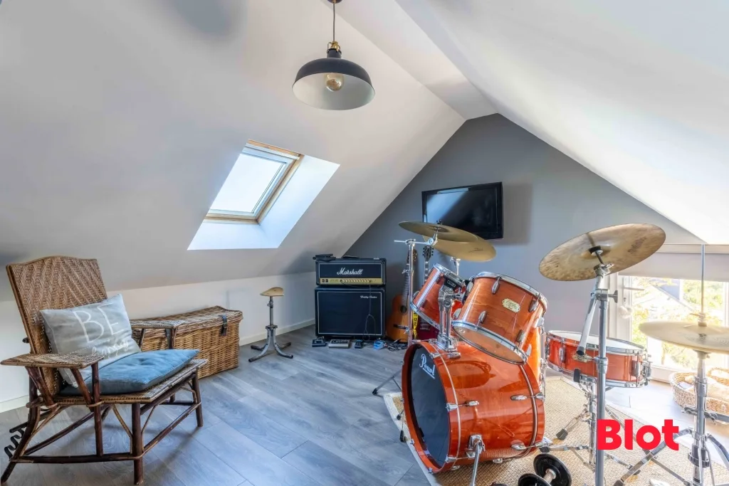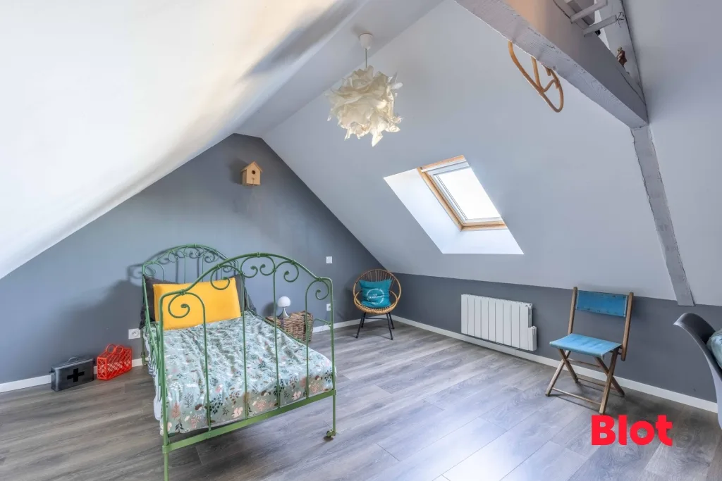 À l'étage, deux chambres spacieuses et un bureau lumineux offrent de nombreuses possibilités d'aménagement pour accueillir votre famille, télétravailler ou créer un espace loisir. Sous les combles, une troisième chambre et une mezzanine viennent compléter ce bel ensemble, apportant charme et volume.