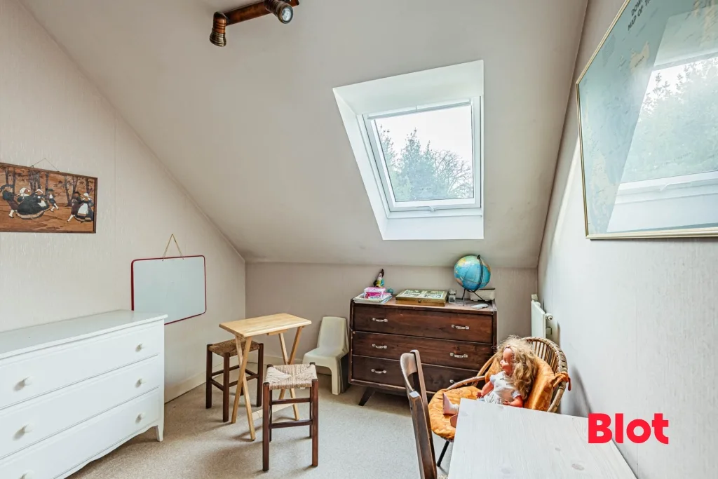 Au deuxième et dernier niveau, vous découvrirez deux grandes chambres supplémentaires, un bureau, une salle de bains et un WC, offrant un ensemble de près de 180 m² au sol et de 163m² en loi carrez, parfaitement adapté à une vie de famille ou au télétravail.