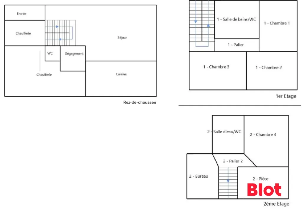 Au deuxième étage, vous retrouverez deux autres chambres, une salle d'eau avec WC et un petit bureau mansardé.