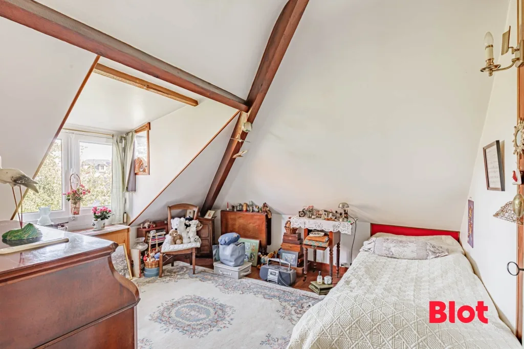 Empruntez le très bel escalier de la maison et vous découvrirez à l'étage trois chambres toutes singulières dont deux aux volumes exceptionnels et une plus petite au charme incontestable.