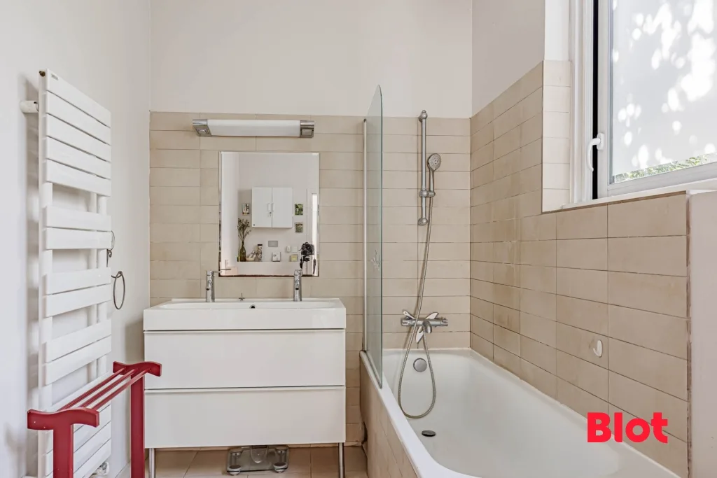 Deux chambres de plus de 17m² viennent compléter cet espace de vie, ainsi qu'une salle de bains avec WC.