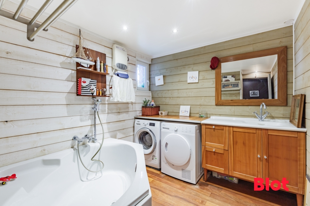 Au rez-de-chaussée, vous trouverez deux nouvelles chambres, dont une avec dressing, une salle d'eau supplémentaire, une buanderie pratique ainsi qu'un WC supplémentaire, offrant un agencement flexible et fonctionnel pour répondre à tous vos besoins.