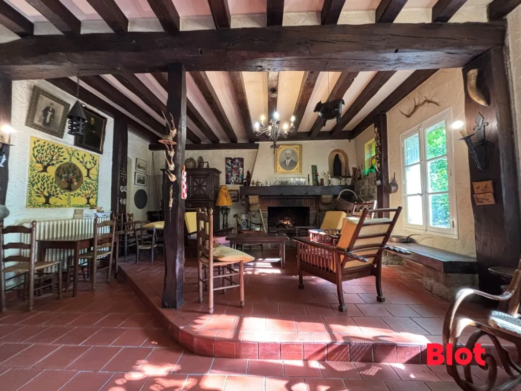 Au rez-de-chaussée : une entrée, un dégagement avec de grands placards, une grande pièce de réception chaleureuse avec une cheminée, des poutres au plafond et des vitraux. Une cuisine avec accès sur le jardin. Un couloir dessert trois chambres dont une avec point d'eau et une avec une salle d'eau privative, une salle de bains, un toilette, une lingerie et chaufferie. Une grande remise d'environ 50m², sol béton, comprenant un fruitier, la cuve à fuel, le système d'eau et une cave à vin, accessible depuis l'intérieur et l'extérieur.
