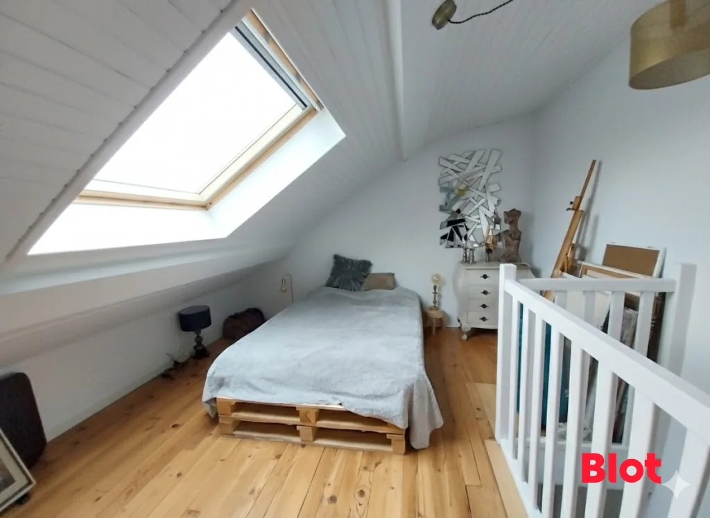 Second niveau : Sous les combles, une deuxième chambre pleine de cachet, idéale pour un espace nuit cosy ou un bureau inspirant pour le télétravail.