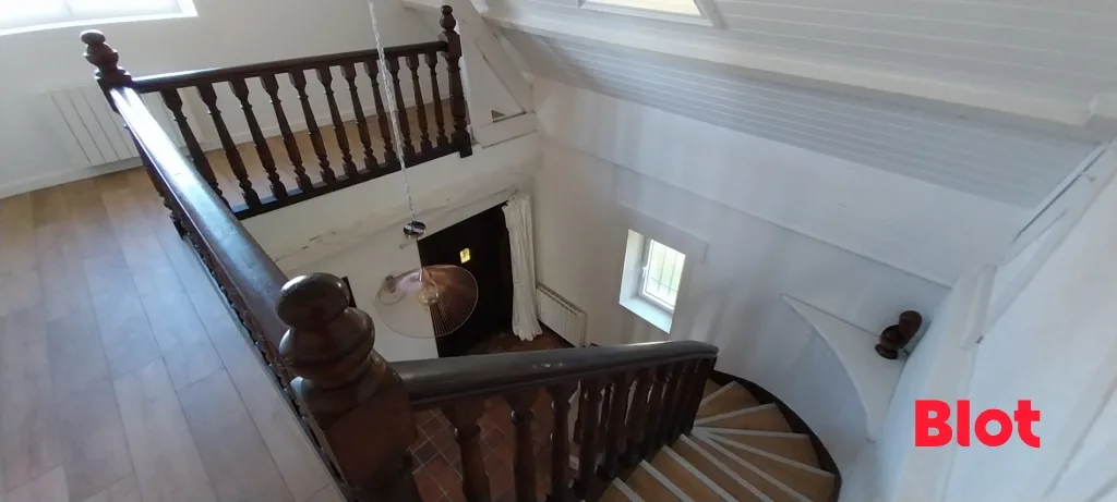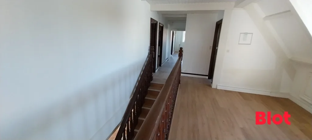 Au 1er étage, un immense palier dessert 4 chambres, une salle de bain et des WC, ainsi qu'un accès à des combles aménagés.
