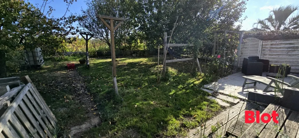 En extérieur, deux beaux espaces paysagers et fruitiers se répartissent de part et d'autre de la parcelle de 375 m².