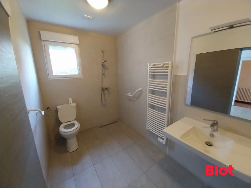 Au RDC : une grande cuisine et une pièce de vie donnant sur une terrasse exposée plein sud, une buanderie, un WC, ainsi qu'une chambre parentale avec salle d'eau et WC.