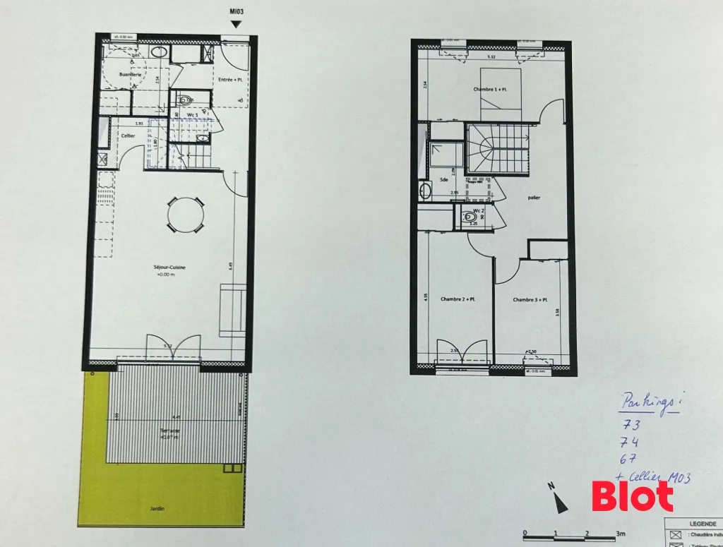 Pour compléter cette maison, 3 places de stationnement sont attribuées dont une avec un cellier attenant.