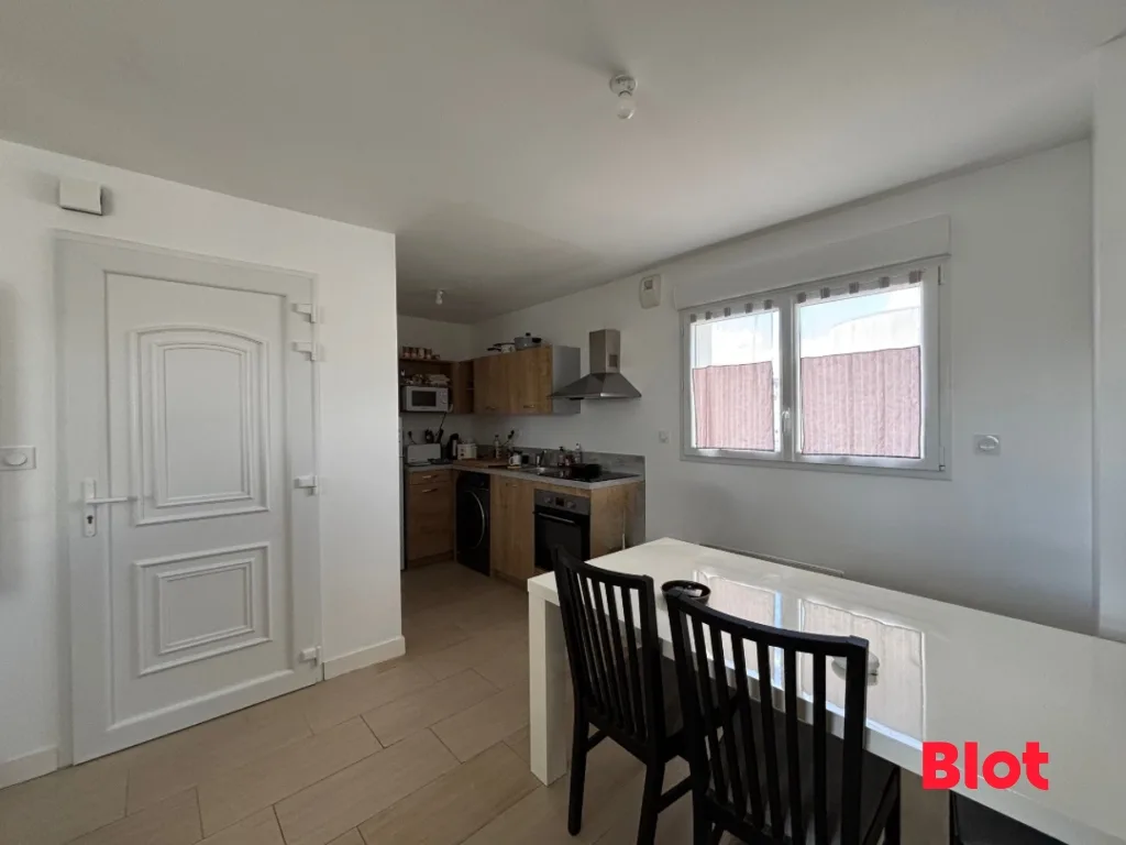 Cet appartement comprend : une entrée, une cuisine aménagée et équipée, un séjour lumineux, une chambre avec placard, une salle d'eau, et des WC séparés. Une place de parking est associée à l'appartement.
