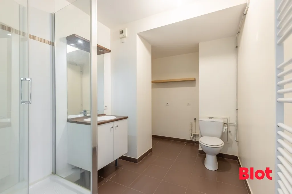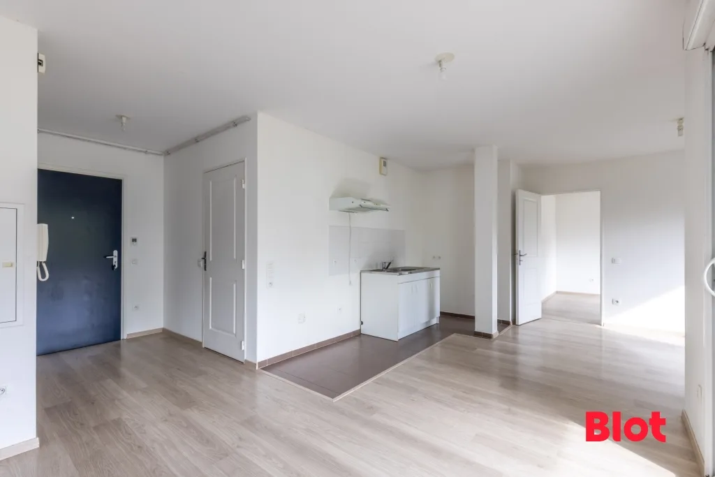 A LOUER - LE RHEU - Proche école et bus, cet APPARTEMENT de type 2 de plus de 46 m² habitables, situé en rez-de-jardin d'une copropriété de 2011 est composé d'une entrée avec placard, un grand salon-séjour avec coin cuisine, une belle chambre et une salle d'eau avec wc.