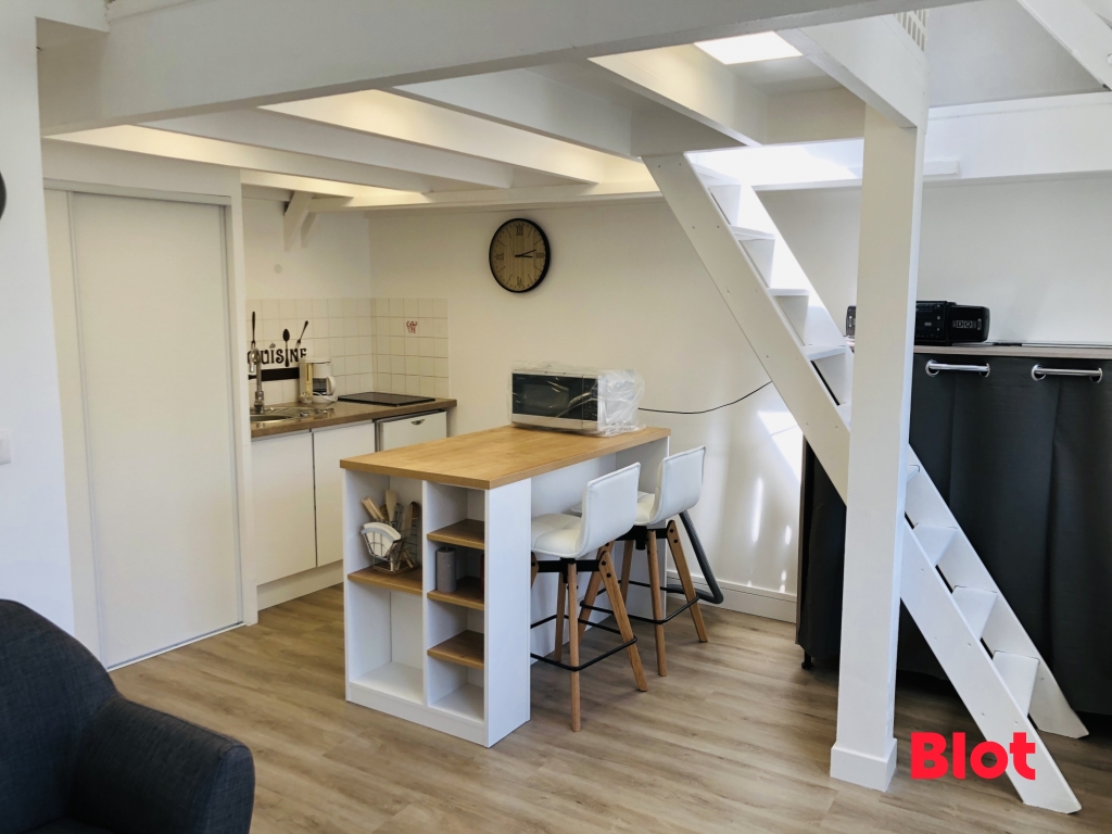A LOUER - RENNES CENTRE - APPARTEMENT T1 BIS MEUBLÉ - Appartement de Type 1 bis meublé d'une surface habitable de 17,97m² comprenant: un séjour avec cuisine aménagée et équipée, un coin nuit en mezzanine avec rangements et une salle de bains avec WC. Disponible immédiatement -