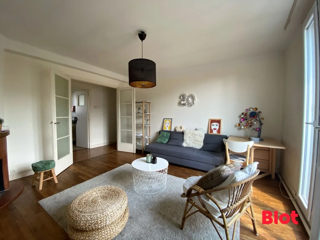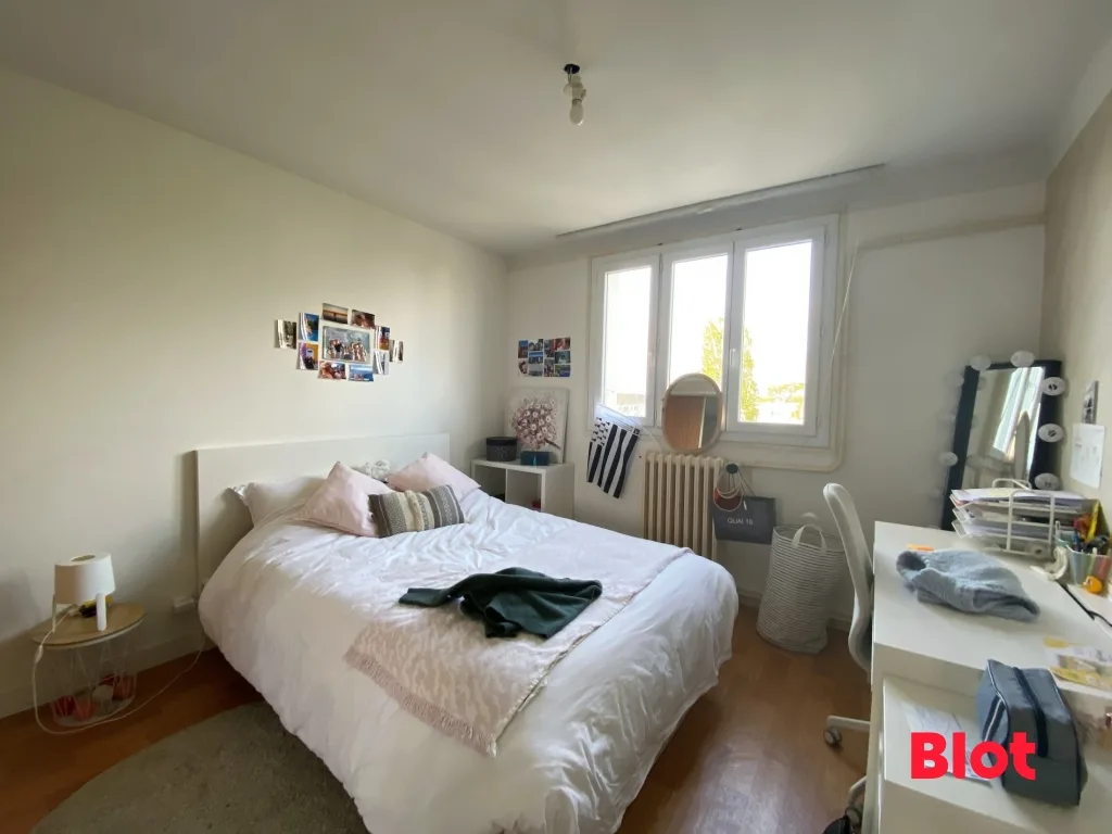 Idéalement situé au cœur du quartier Fougères, proche de la fac de Droit - Venez découvrir cet appartement de type 3 de 67,21m² entièrement MEUBLE situé au 4ème et dernier étage d'une petite copropriété. Il se compose d'une entrée avec placard, un séjour lumineux avec cheminée, une cuisine équipée et aménagée, 2 chambres avec placard, une salle d'eau, un WC séparé. Il dispose également d'une cave et d'un grenier.