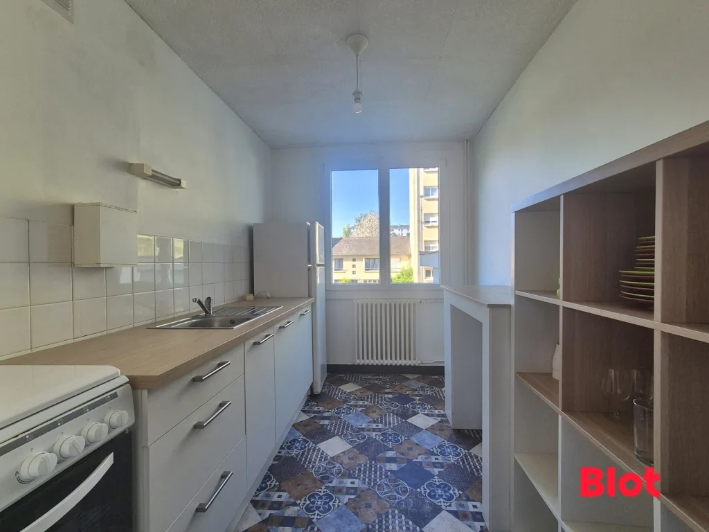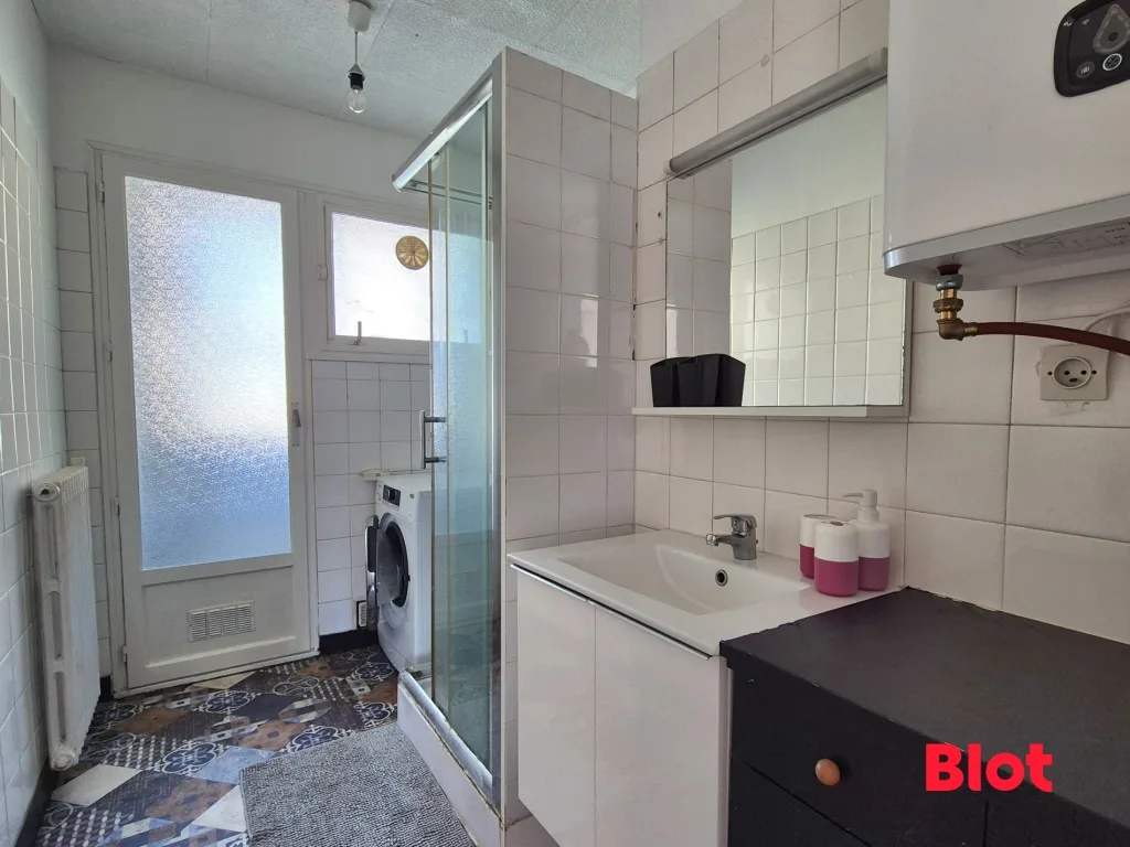 Vous y trouverez une entrée avec placard, un séjour d'environ 15m² exposé Sud, une cuisine fermée aménagée et équipée (Four, plaques, réfrigérateur), deux chambres, une salle d'eau avec Machine à laver et loggia et des WC séparés.