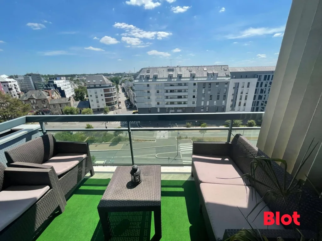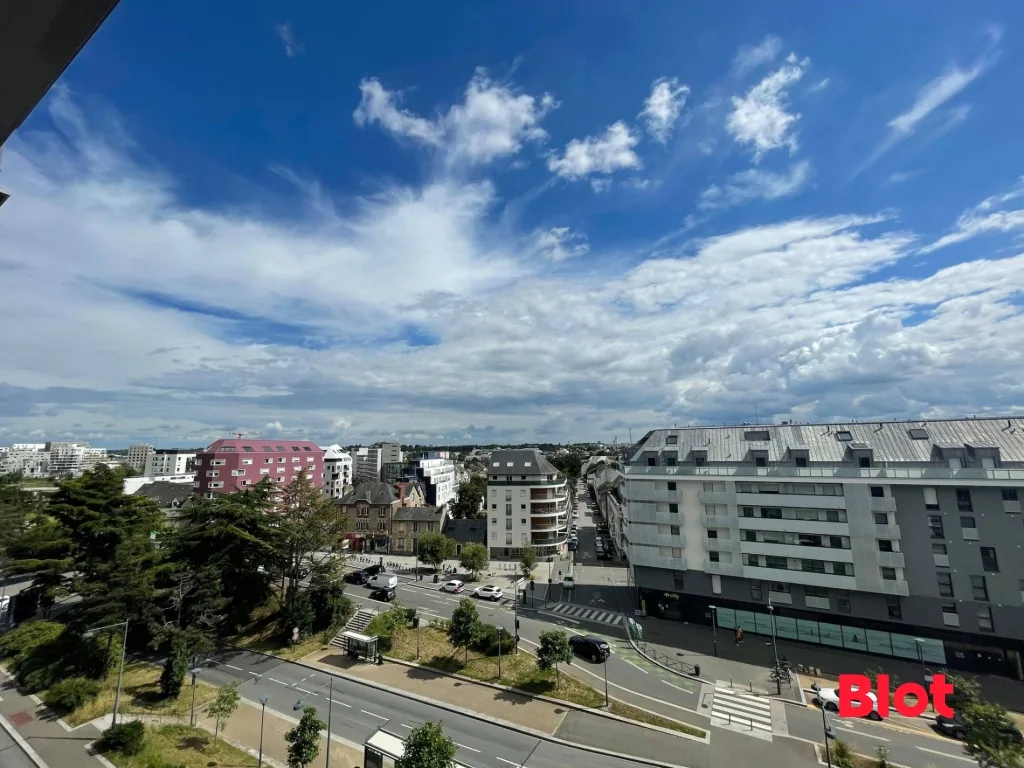 A LOUER RENNES - Avenue Aristide Briand - Appartement lumineux de type 2 de 48.11m² situé au cœur des commerces et transports en commun - Il vous offrira une entrée avec placard, un séjour ouvert sur un balcon exposé Sud, une cuisine équipée et aménagée (four, plaques, hotte), une chambre, une salle d'eau, WC séparés et un débarras.