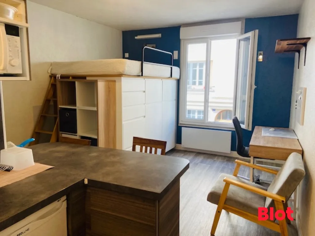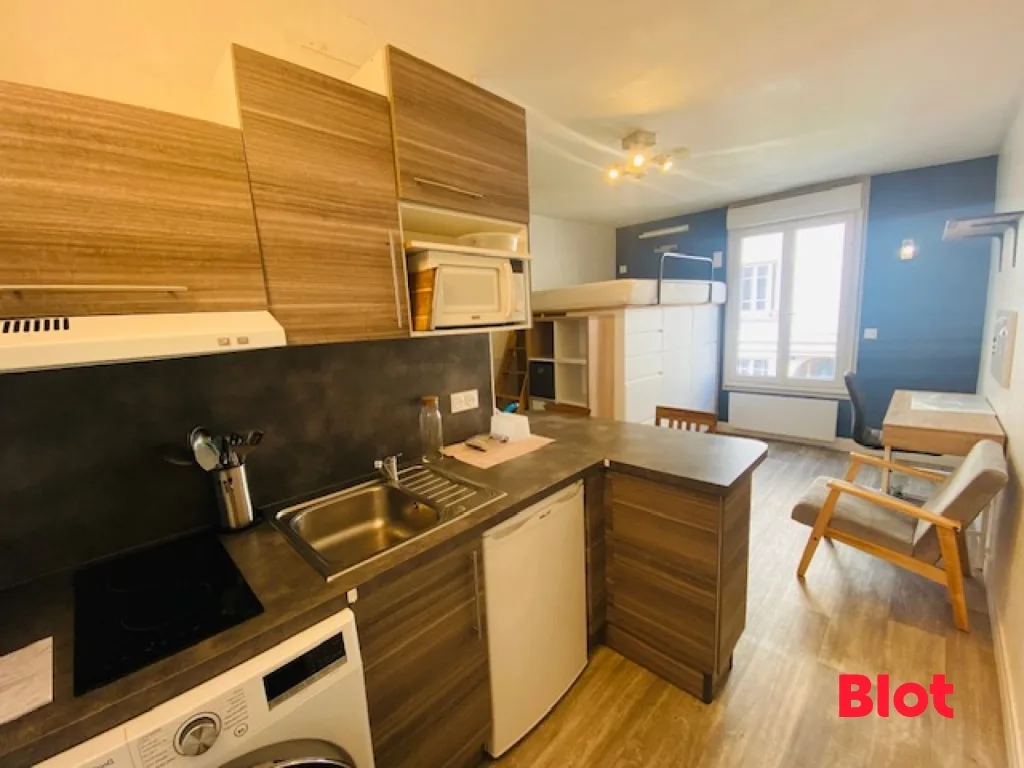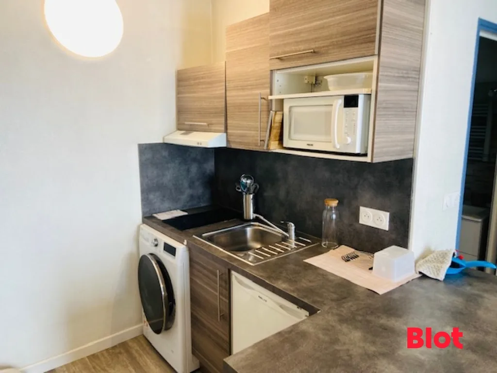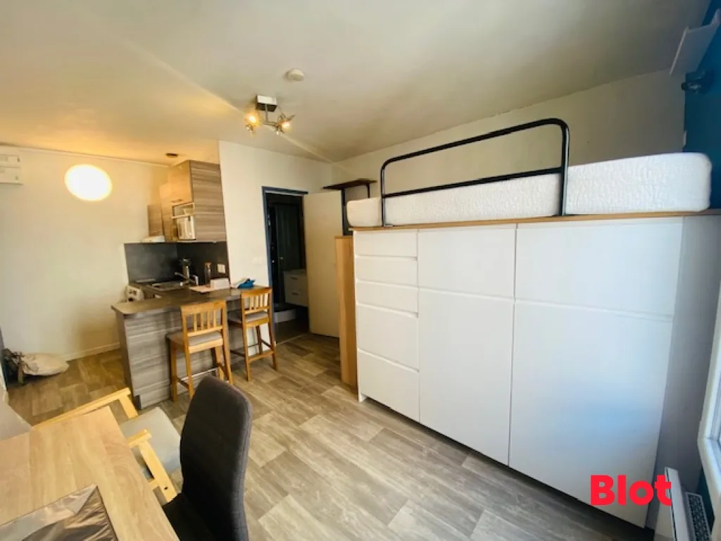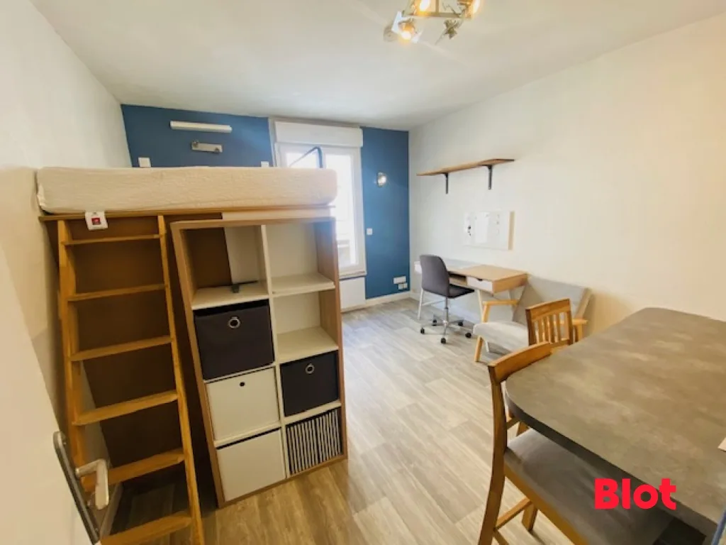 Venez découvrir cet agréable STUDIO meublé composé d'une cuisine équipée et aménagée (plaques, hotte, réfrigérateur, lave-linge séchant) - une pièce principale, une salle d'eau avec W.C.