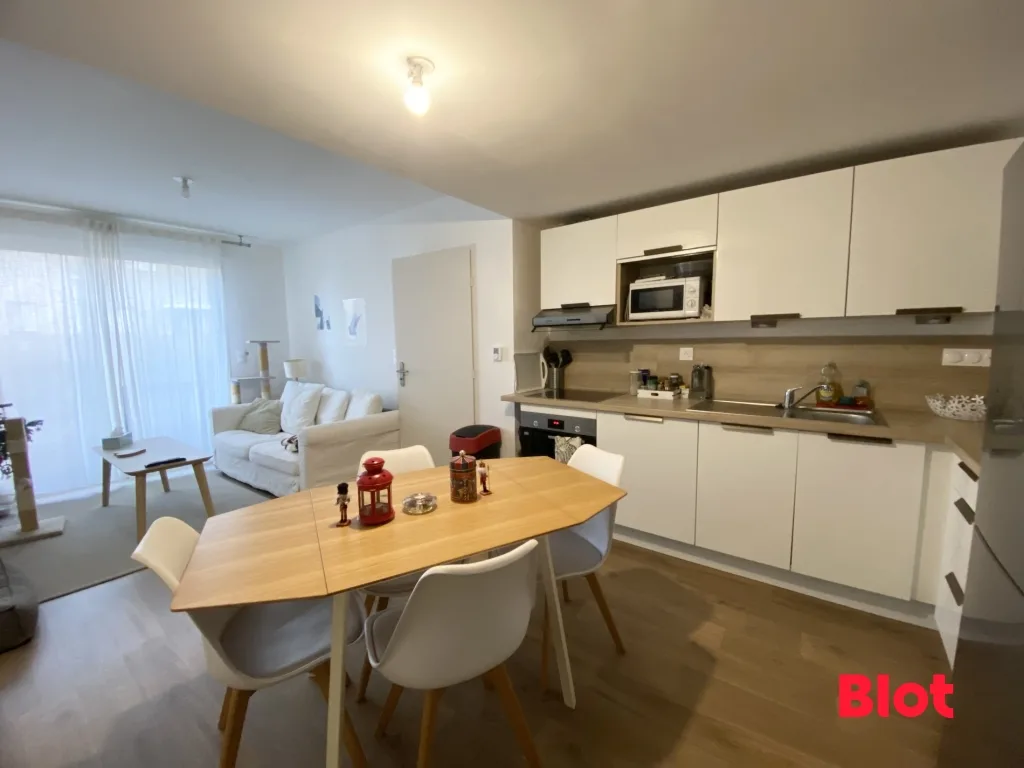 Allée du Saumurois, à proximité de toutes commodités et des universités, dans une belle copropriété de 2023, au 1er étage, superbe appartement T3 de 67.95m² comprenant un séjour avec cuisine ouverte aménagée et équipée (hotte, plaques électriques, four, lave-vaisselle, réfrigérateur), donnant sur un balcon exposé Ouest, deux chambres avec placard, deux salles d'eau avec WC.
