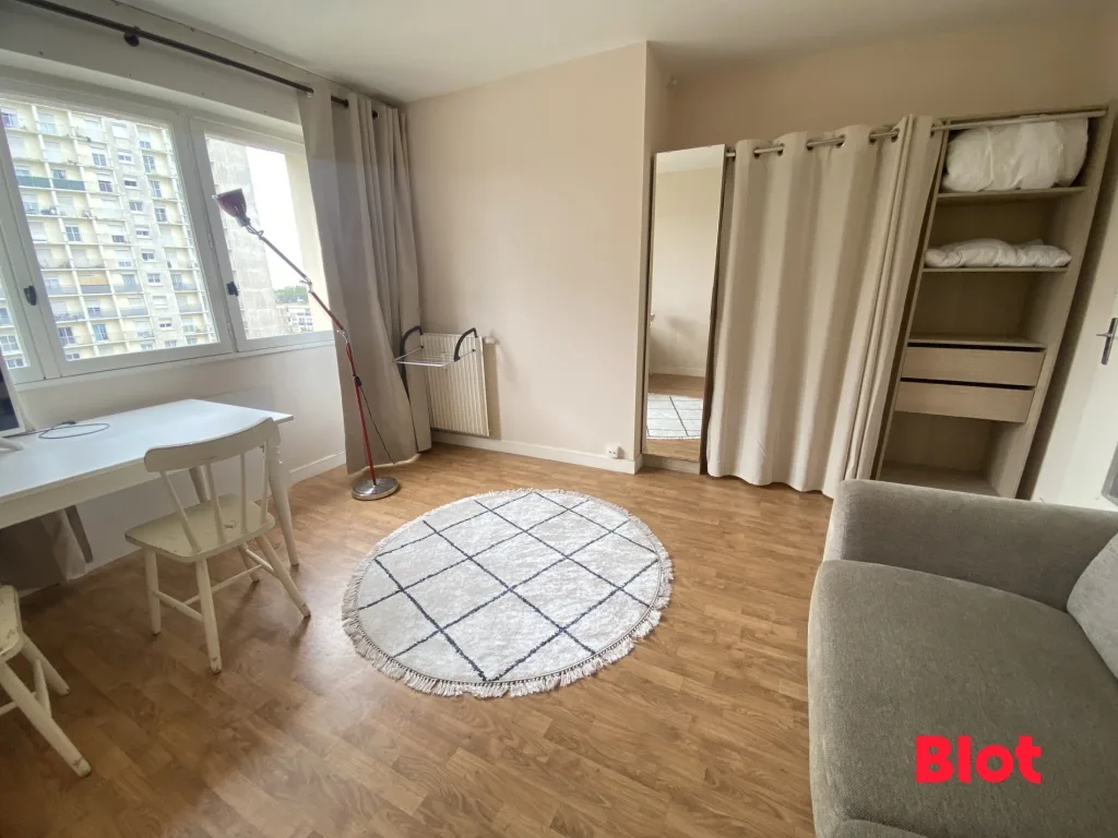 Boulevard d'Anjou, à proximité des commerces et transports, au 4ème étage sur 12 avec ascenseur, ce bel appartement de T1Bis MEUBLE de plus de 33m² comprenant une grande entrée, un séjour/chambre avec dressing, un dégagement avec placard, une cuisine aménagée et équipée (réfrigérateur, plaques et four) et une salle de bains avec WC.