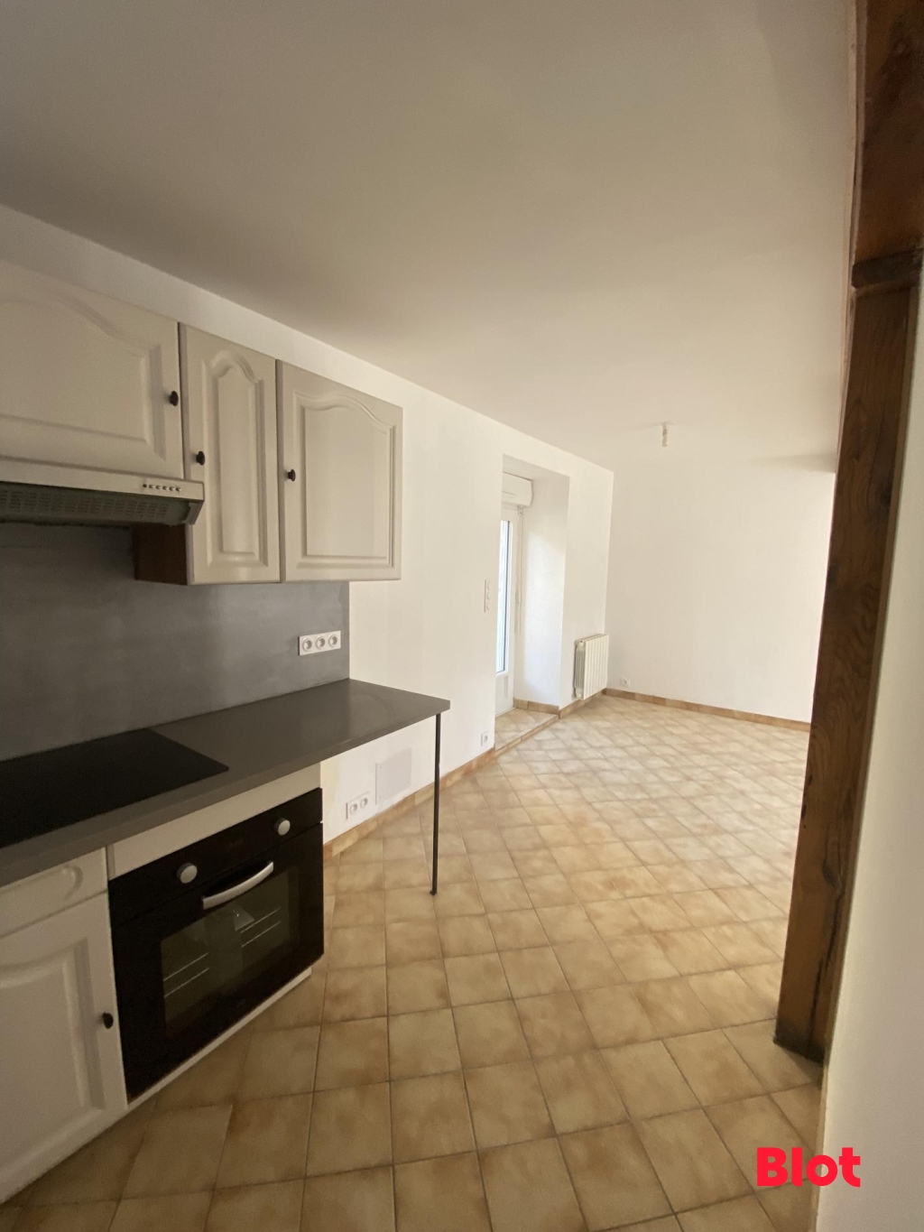 Il se compose d'un salon-séjour ouvert sur une cuisine aménagée et équipée (hôte; plaque, four), un wc, une chambre, une arrière cuisine et une salle d'eau + une place de parking privative.