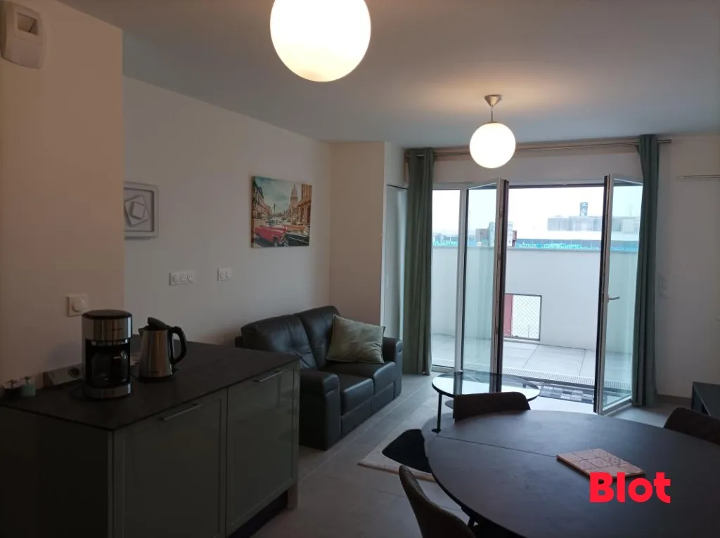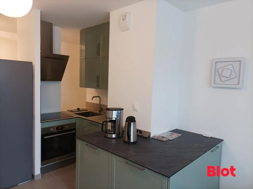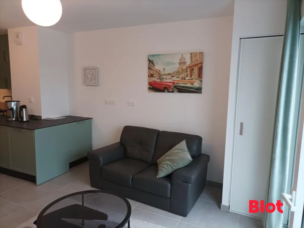 Proche toutes commodités et des plages, superbe appartement meublé récent de type 3 d'une superficie de 67.54 m² composé d'une entrée, un séjour avec cuisine aménagée et équipée, une salle d'eau et deux chambres.