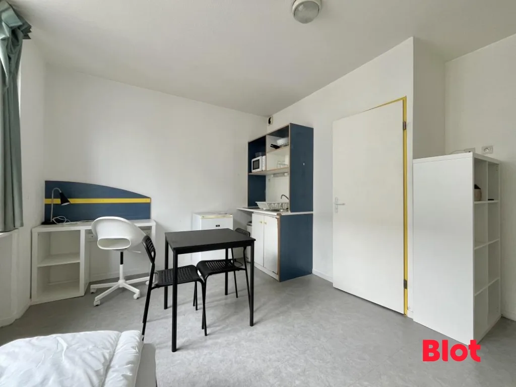 Ce logement dispose d'une pièce de vie avec un coin cuisine aménagée et équipée (micro-onde, réfrigérateur, plaques électriques) et d'une salle d'eau avec WC.