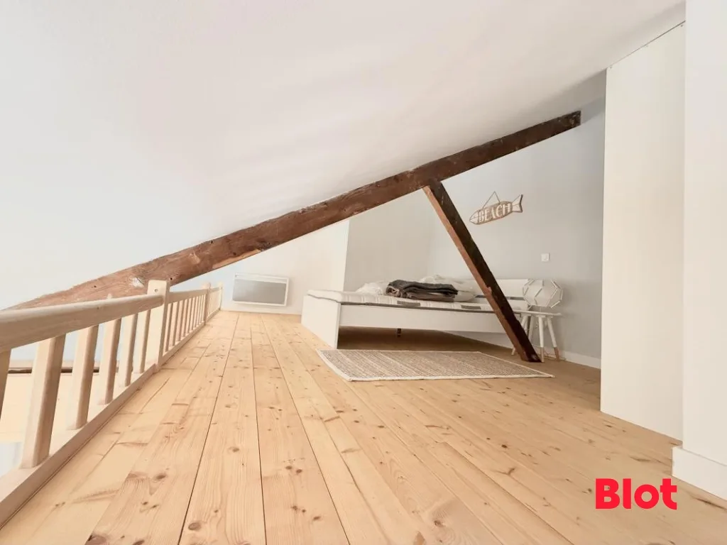Il se compose d'un séjour lumineux exposé, d'une cuisine ouverte aménagée et équipée (plaques, hotte, micro-ondes, réfrigérateur/congélateur, lave-linge et rangements), d'une mezzanine avec rangement, d'une salle d'eau et WC séparés. Coup de cœur assuré !