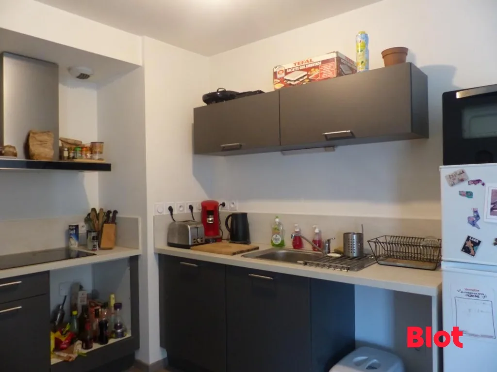 Cet appartement est composé d'un grand séjour ouvert sur une cuisine aménagée équipée (hotte, plaques et rangements), de deux chambres, d'une salle de bains et de wc séparés.