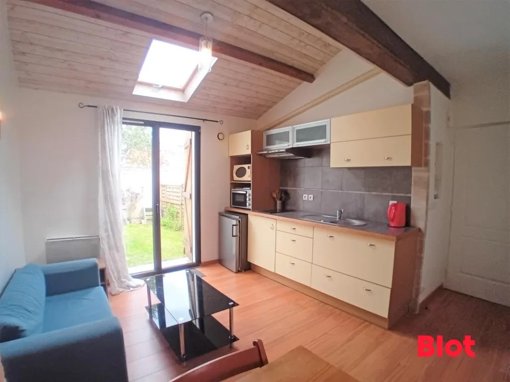 Au coeur d'une impasse privée, au calme, cet appartement se compose d'une pièce de vie, d'une cuisine ouverte aménagée et équipée (hotte, plaques électriques, four, micro-ondes, réfrigérateur et rangements), d'une chambre et d'une salle d'eau avec WC.