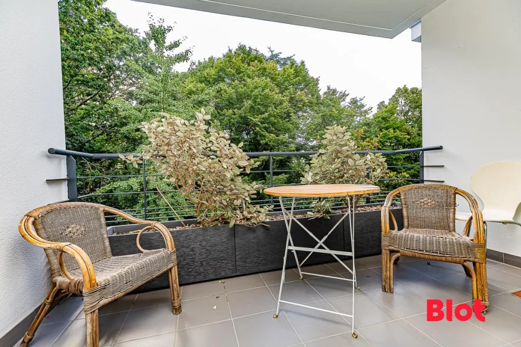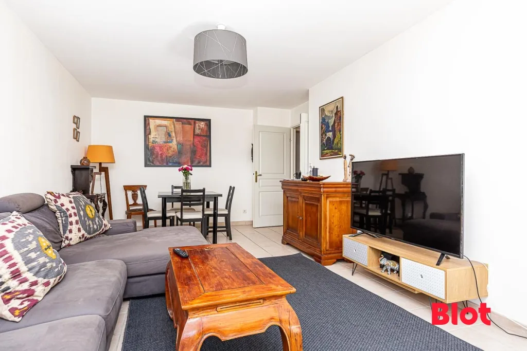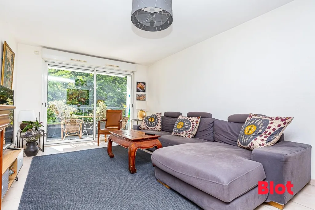 Donnant à l'arrière de la copropriété, sur un parc arboré et au calme, cet appartement se compose d'une entrée, d'un dégagement avec placard, d'une cuisine séparée aménagée équipée (four, micro-ondes, hotte, plaques vitrocéramique, lave-vaisselle, réfrigérateur et rangements) d'un séjour donnant sur un balcon au calme, de deux chambres dont une avec placard, d'une salle de bains et wc séparés.