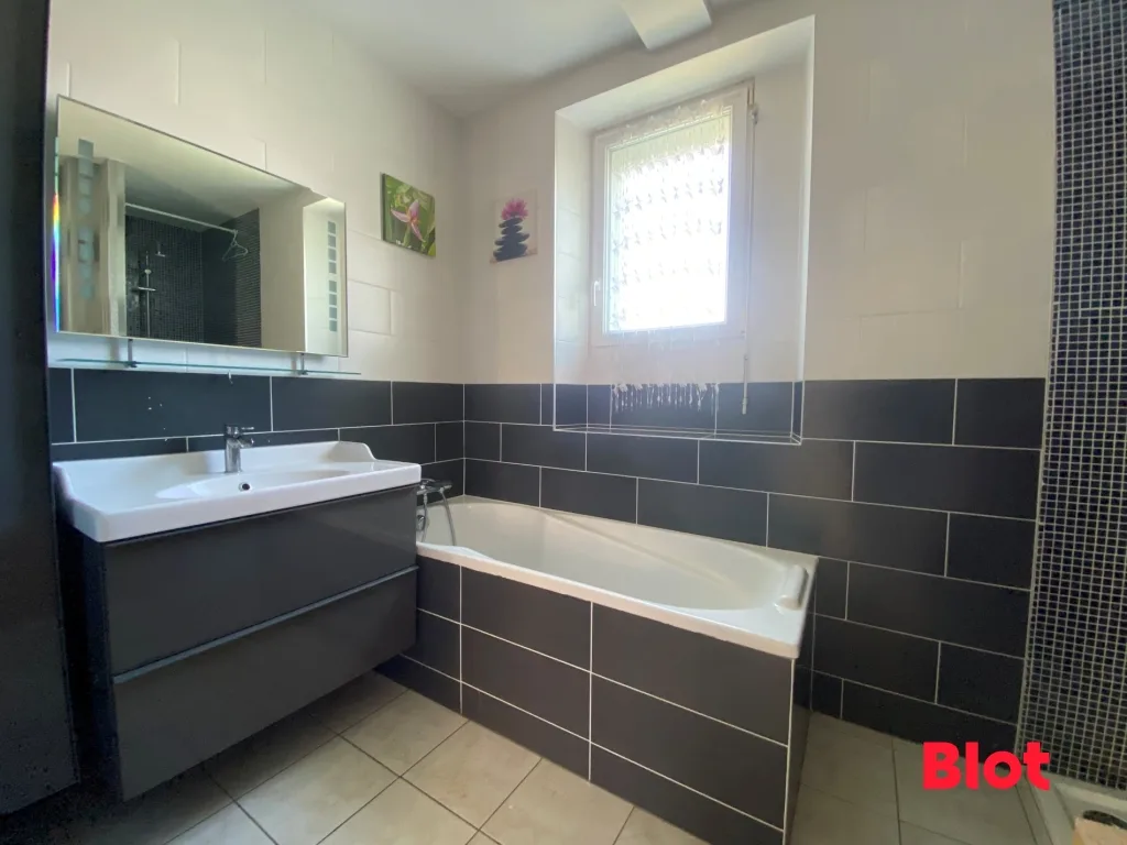 Au rez-de-chaussée, il se compose d'une vaste pièce de vie lumineuse avec cuisine ouverte aménagée et équipée (four, micro-ondes, plaques, hotte), de deux chambres avec placards (possibilité d'une troisième), d'un WC séparé ainsi que d'une grande salle de bains avec douche et baignoire.