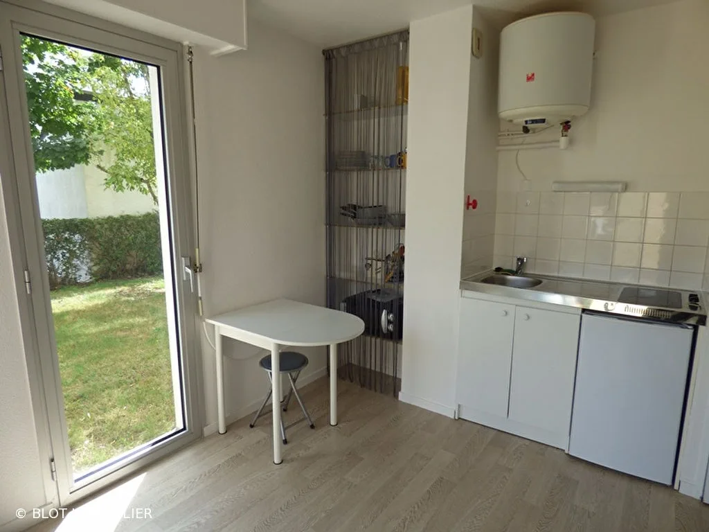 A LOUER - Un studio meublé du 18,57 m² au rez-de-chaussée situé quartier Cliscouët, proche de l'IUT. Il vous offre une entrée avec rangement, une pièce de vie avec kitchenette (plaque électrique, frigo, microondes) et une salle de bains avec WC.