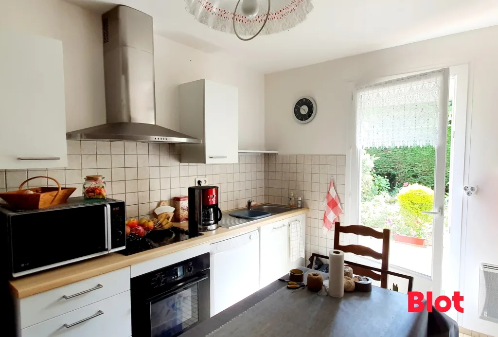 Agréable maison de type 5 d'une surface habitable de 90.05 m2 située dans un lotissement calme. Cette maison vous propose au rez-de-chaussée un salon-séjour, une cuisine indépendante aménagée et équipée (plaques, four et hotte), un WC.