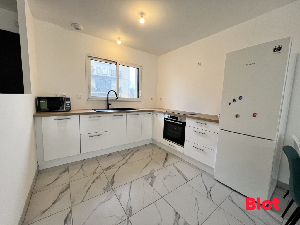 Vous découvrirez en entrant une cuisine aménagée et équipée, ouverte sur le salon séjour, offrant ainsi un bel espace de vie de plus de 35m².