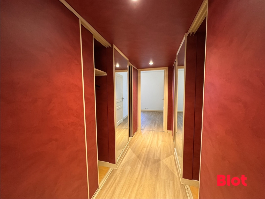 Deux grandes chambres, une chambre plus petite pouvant servir de bureau, une salle de bains, WC séparés, un placard avec point d'eau